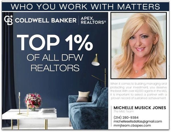 Michelle Musick Jones is a celebrated Realtor professional whose sterling career in Allen and the greater Collin County Texas region spans over 30 years, marked by consistent recognition as one of the top agents in Dallas–Fort Worth and beyond. As a certified Coldwell Banker Global Luxury specialist since 1999 and a founding member of the Institute for Luxury Home Marketing, she has earned numerous honors, including being named among Texas’s 100 Most Influential Realtors, a D Magazine “Top Producer,” and part of Real Trends’ top-producing teams nationwide. With over $1 billion in career real estate sales, Michelle's deep market insights, strategic marketing, and high-end service have proven her as a go-to expert in the Collin County Texas region.